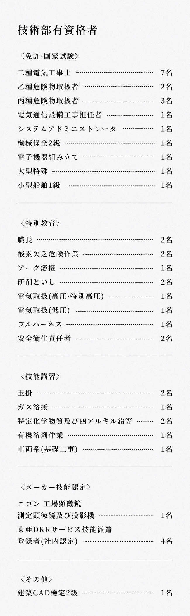 車の安全を維持するのに車検があるように、測定機の精度を維持するには精度点検・校正が必要不可欠です。弊社では、ニコン認定の検定資格者を配置して、お客様の計測器の精度維持、測定ノウハウの提供に努めております。